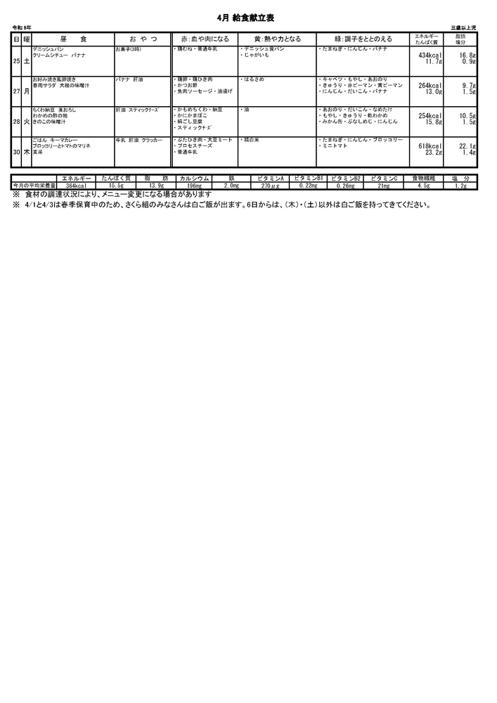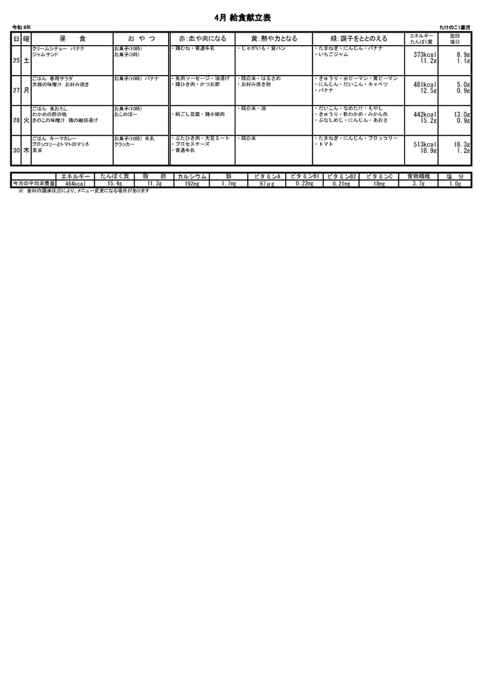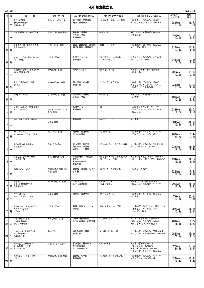 2026年給食だより